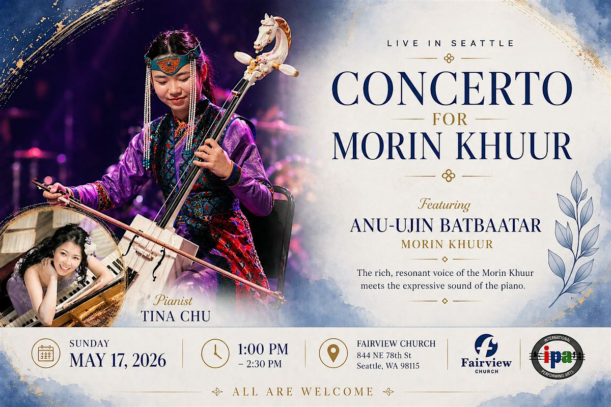 ZJE member Anu-Ujin Batbaatar will present her first solo concert, Concerto for Morin Khuur, on May 17, 2026, 1:00 pm in Seattle! This meaningful performance features a powerful program including:• The Gallop of the Noble Steed — Jamyangiin Chuluun• Csárdás — Vittorio Monti• Concerto for Morin Khuur — B. Sharav• Vocalise — Sergei RachmaninoffThis concert marks an important artistic step as Anu brings the voice of the morin khuur to the stage in a deeply personal way.