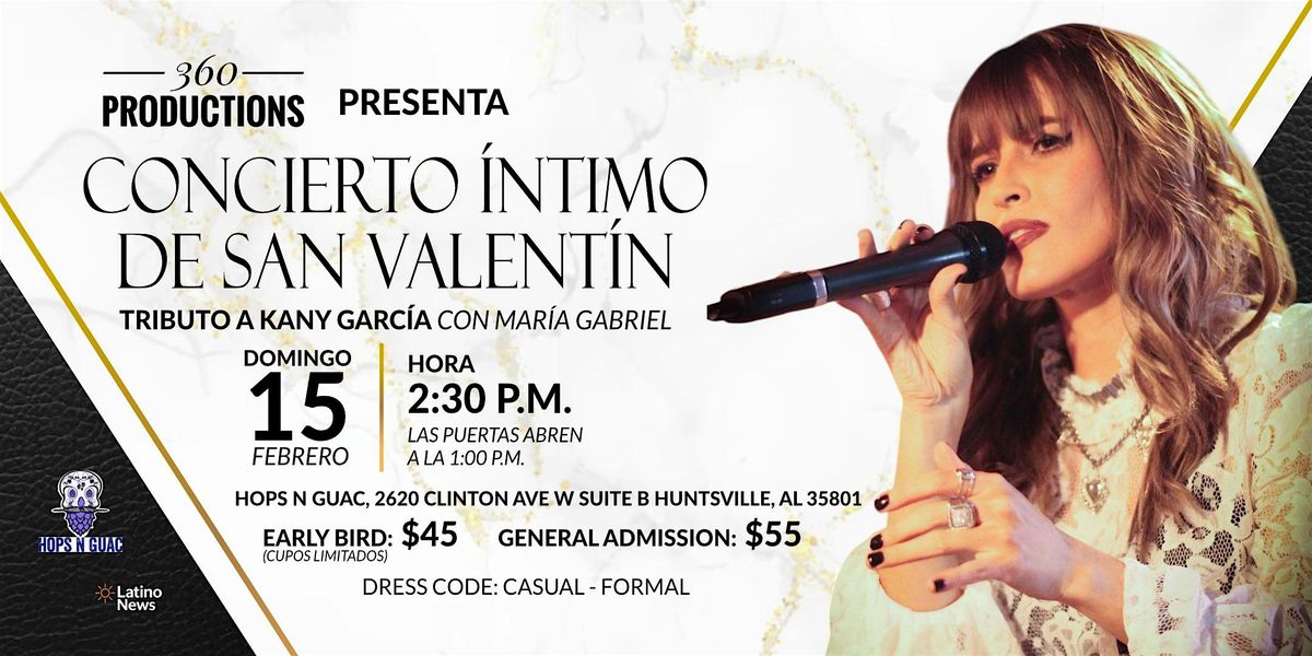 Este concierto contará con la participación de la Venezolana María Gabriel Oquendo, doble oficial de Kany García (ex participante del programa colombiano YO ME LLAMO), quien ofrecerá una interpretación auténtica y llena de sentimiento.