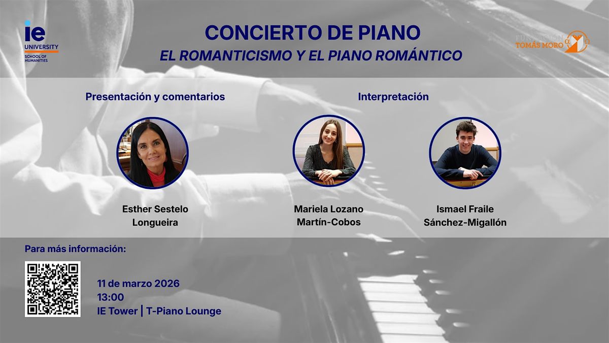 Este evento ofrece una experiencia humanística y artística que combina interpretaciones de piano en directo con una reflexión contextual sobre el Romanticismo como movimiento cultural, histórico y musical del siglo XIX. A través de obras seleccionadas del repertorio romántico, el público explorará las dimensiones expresivas, emocionales y estéticas que definieron este periodo y dieron forma a la evolución de la música occidental.