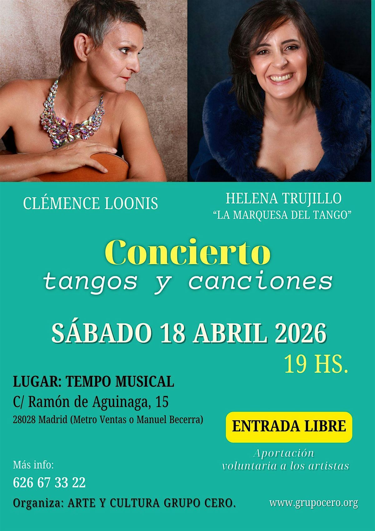 Disfruta de una tarde única con un repertorio de tangos y canciones interpretadas por las artistas del Grupo Cero Clémence Loonis y Helena Trujillo.