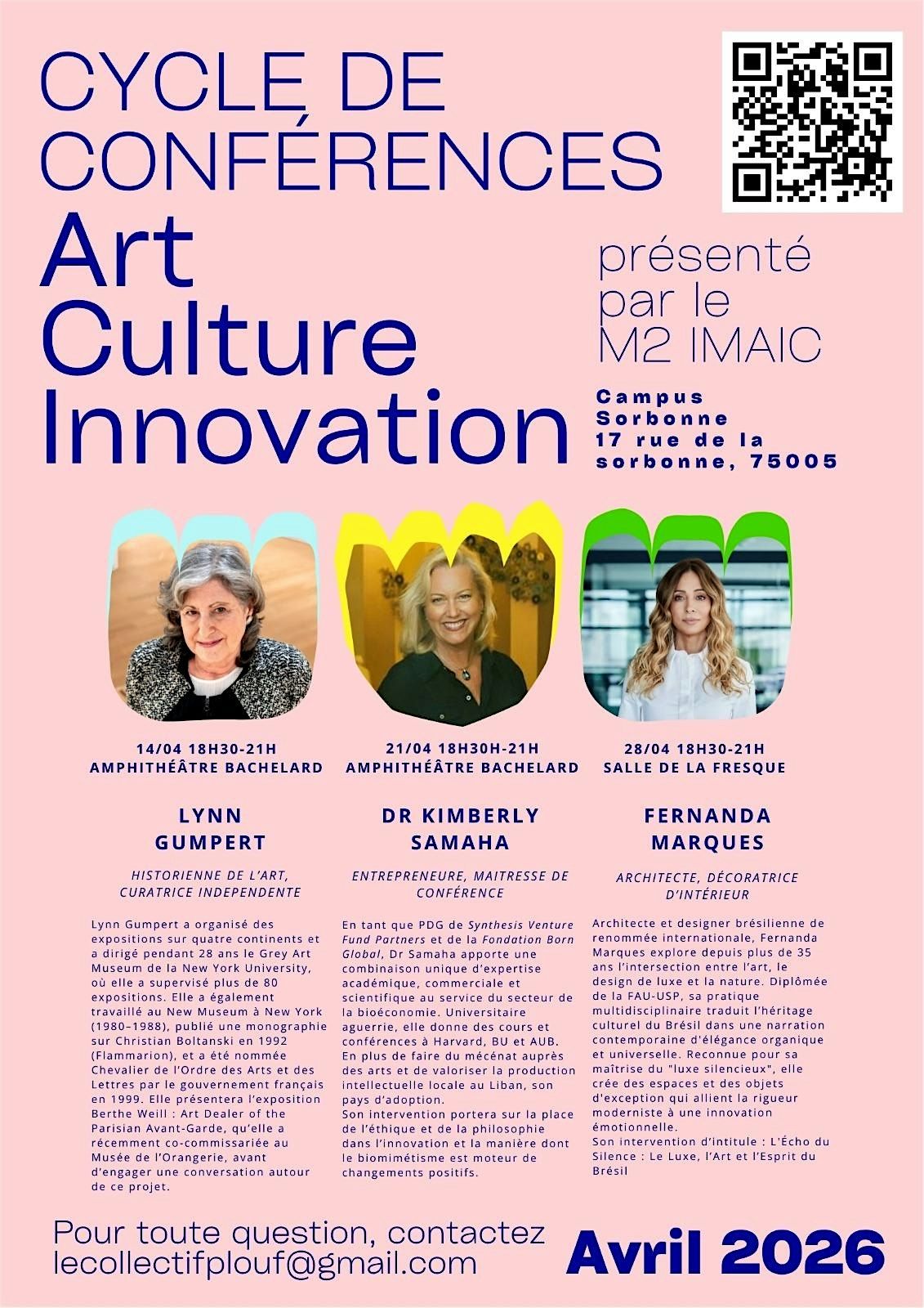 Conférence: Art, Culture et Innovation: Dr Kimberly Samaha Amphithéâtre Bachelard, Sorbonne 21/04 18h30