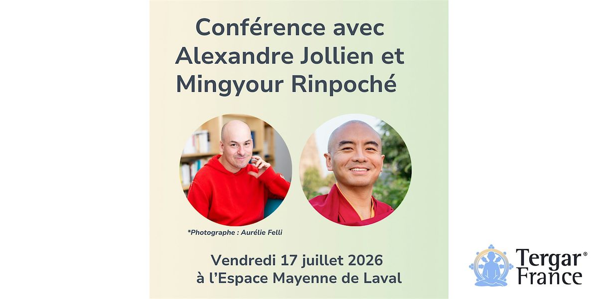 - avec Mingyour Rinpoché à Laval les 18 et 19 juillet 2026. Ce programme portera sur les effets transformateurs de la méditation. Pour plus d'informations, consultez la page de l'événement.