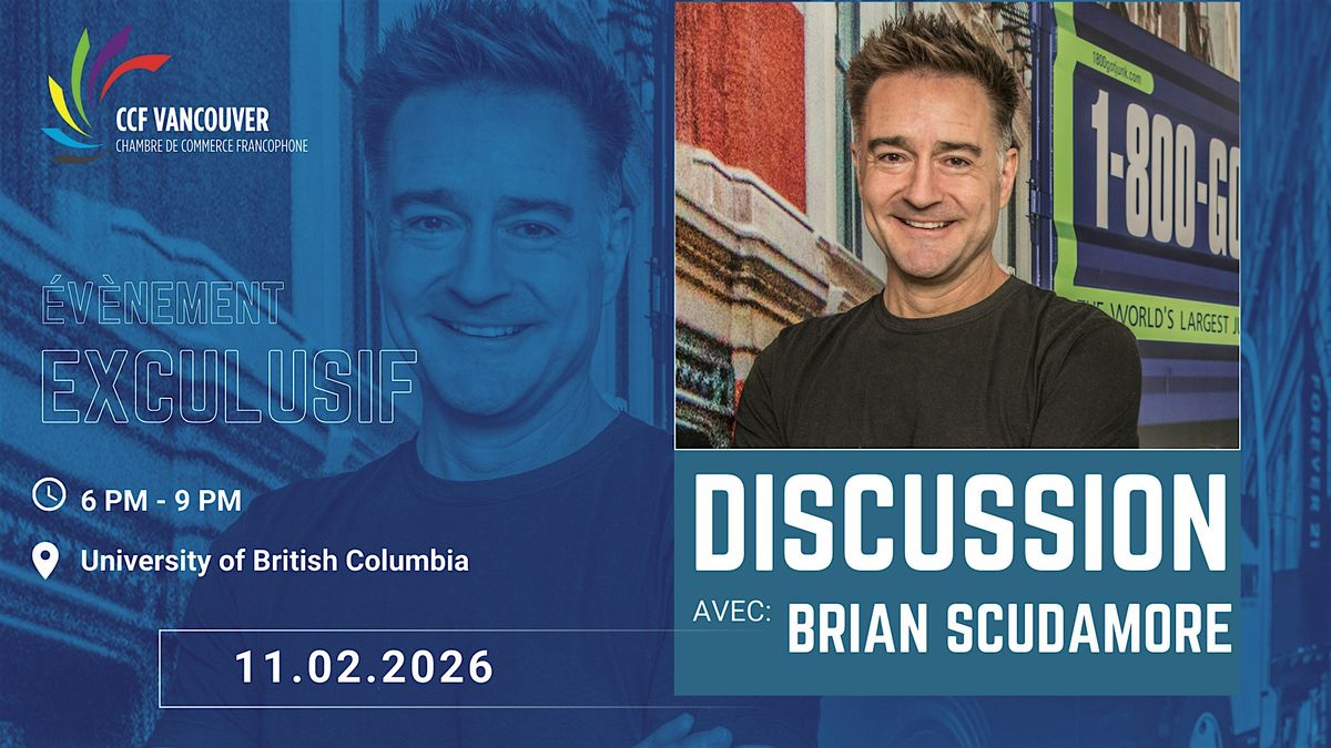 Lors de cette rencontre exceptionnelle, Brian Scudamore partagera les moments clés de son parcours entrepreneurial, les défis rencontrés, les leçons apprises ainsi que sa vision du succès et du leadership. Une occasion unique pour la communauté francophone de Vancouver d’échanger, de s’inspirer et de poser leurs questions à l’un des entrepreneurs les plus influents du pays.