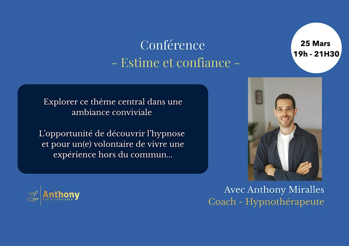 Cette conférence mêle explications claires, échanges avec le public et une démonstration d’hypnose sur un volontaire. À travers un thème autour de confiance, l’estime ou la gestion du stress, vous découvrez comment fonctionne votre mental et comment l’hypnose ou l'auto-hypnose peut faire dépasser les blocages. Un format vivant, rassurant et accessible à tous.