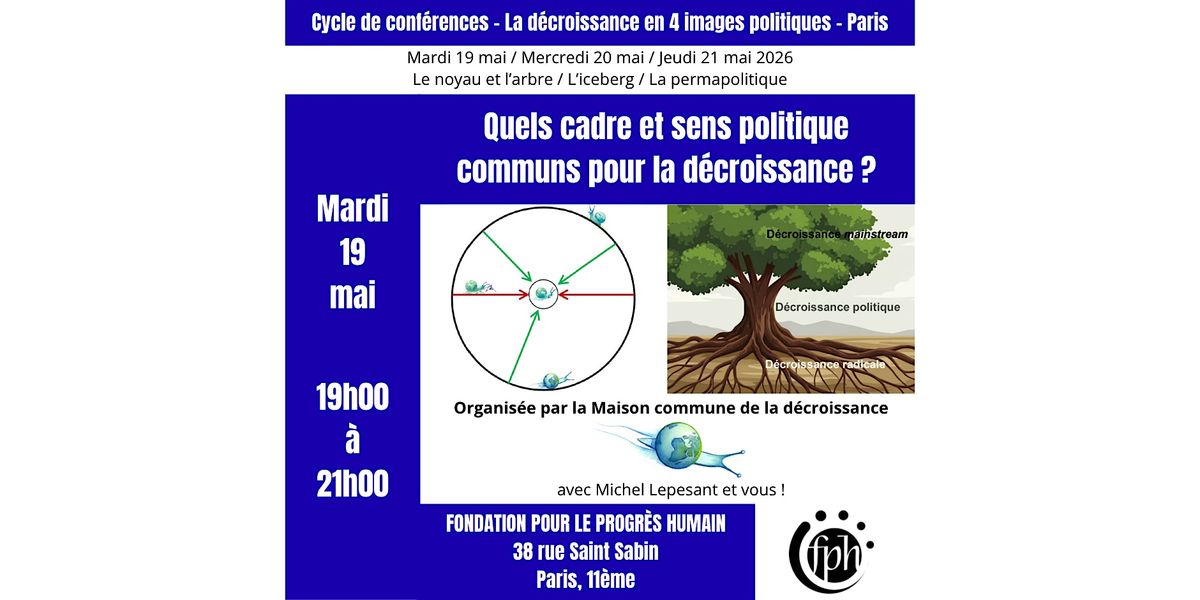 - Jeudi 21 mai, "Comment comprendre le degré de politisation au sein de la décroissance ?", avec l'image de la permapolitique (19h-21h, Volumes, Paris)