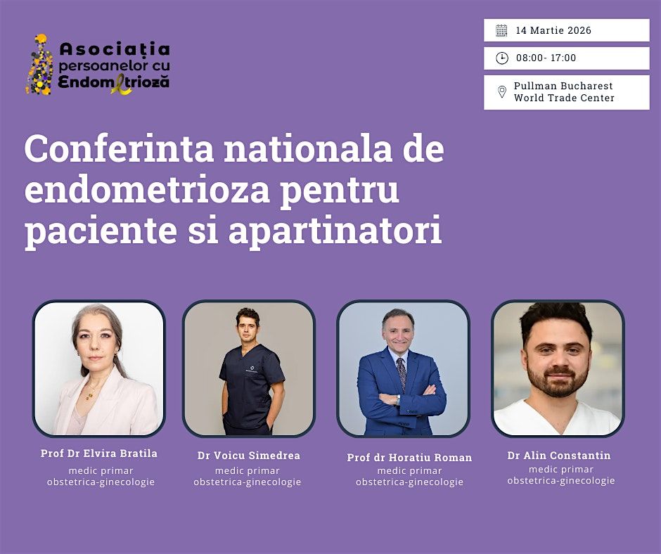 Participare gratuita. Evenimentul va reuni specialiști de renume în diagnosticarea și tratarea endometriozei: Prof. Dr. Elvira Brătilă, Dr. Voicu Simedrea, Prof. Dr. Horațiu Roman, Dr. Alin ConstantinConferința oferă un cadru dedicat informării corecte, sprijinului pentru paciente și dialogului deschis cu experți în domeniu.