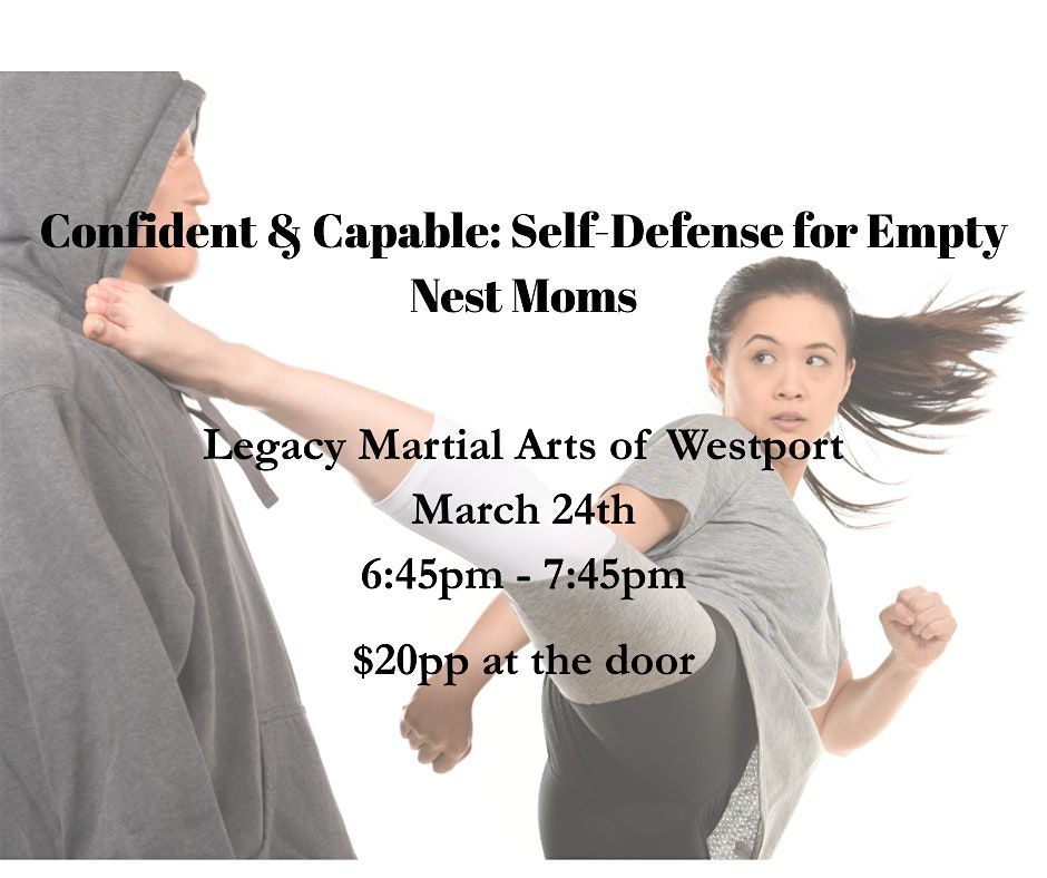 Join us for a private self-defense evening designed exclusively for Westport empty nest moms. This one-hour guided class at Legacy Martial Arts blends practical skill-building with confidence and awareness in a supportive, small-group setting.