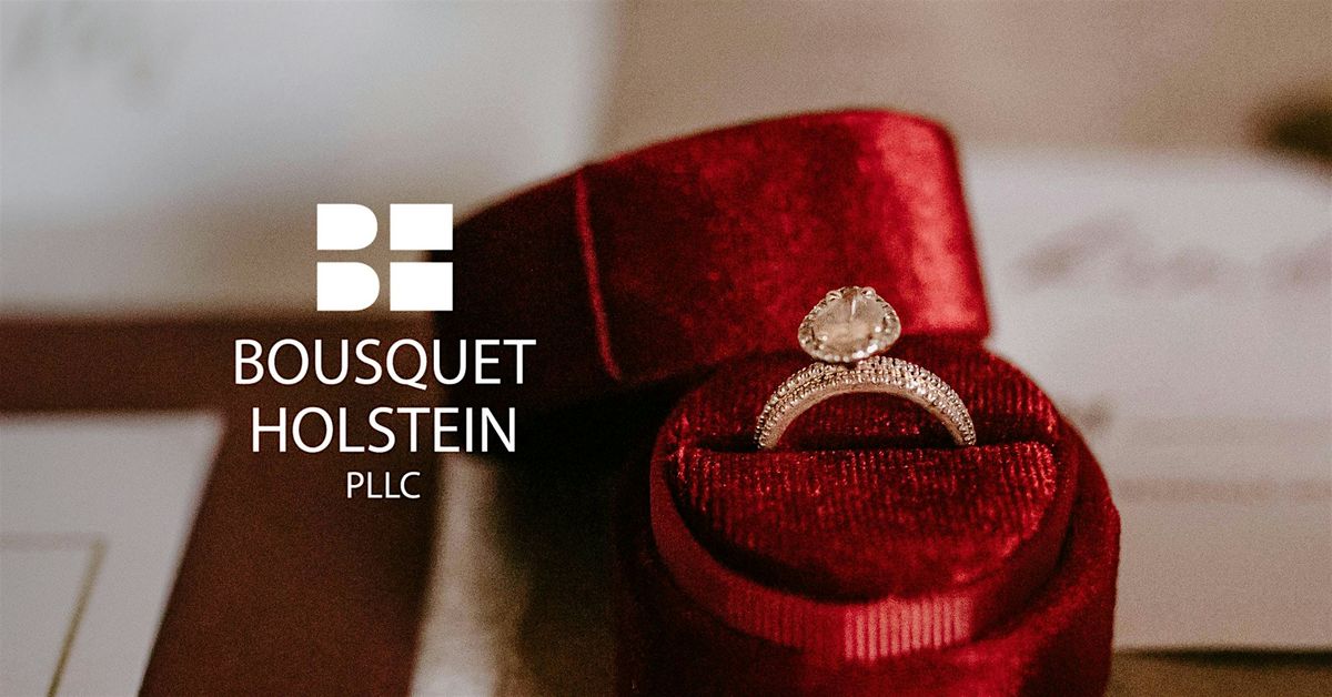 Whether you’re in a serious relationship, newly-engaged, or just curious, join us for a glass of wine (on Marisa) and bring the questions you've been afraid to ask about prenups and marriage. Cheers - we hope to see you there!