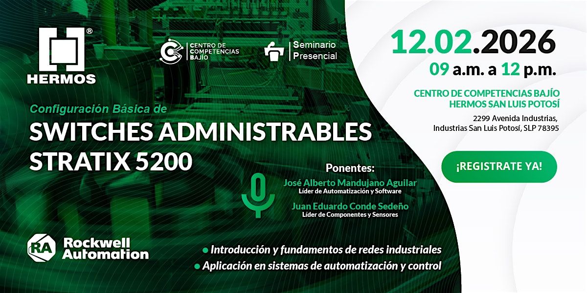 En esta sesión conocerás el funcionamiento de los Switches Administrables Stratix 5200 🔌 y los conceptos básicos del control de redes industriales ⚙️. A través de una introducción guiada, comprenderás sus principales características, beneficios y buenas prácticas para lograr una comunicación eficiente y confiable en entornos de automatización industrial.