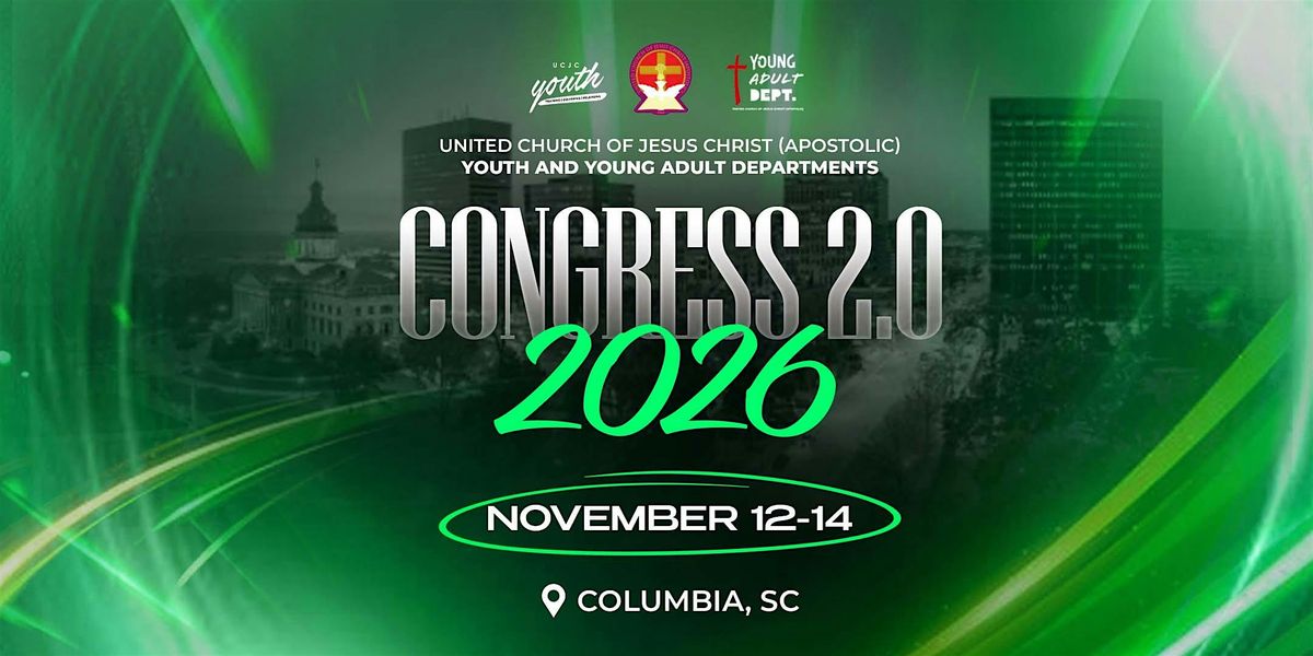 Join us for three vibrant days of worship, fellowship, and transformation at Congress 2.0 2026, hosted by the United Church of Jesus Christ (Apostolic) Youth and Young Adult Departments. Youth and young adults from across our dioceses and congregations will gather in Columbia, SC, for an immersive encounter that blends spirit-filled worship, empowering sessions, and meaningful connection.