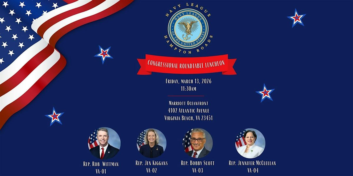 Join Navy League of the United States, Hampton Roads on Friday, March 13th for our annual Congressional Roundtable Luncheon, featuring all four Members of Congress from the Hampton Roads Congressional Delegation.