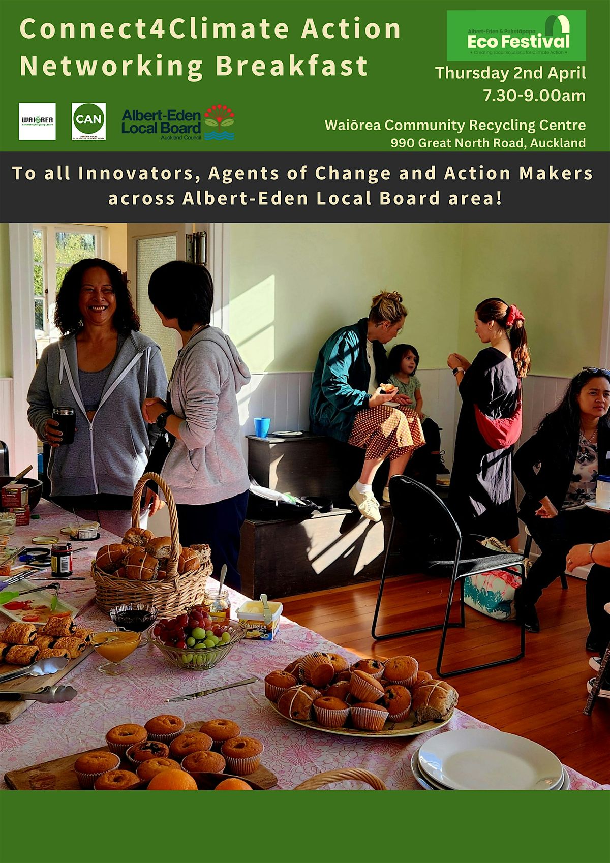 Welcome to the Connect 4 Climate Action Networking Breakfast at Waiōrea Community Recycling Centre on 2nd April 2026 at 7.30am. Join us for a morning of exciting collaborations and funding opportunities with like-minded individuals who are passionate about tackling climate change and creating a sustainable future, all while enjoying a delicious breakfast spread. This event is open to all who want to make a positive impact from taking action to providing funding opportunities, whether you are an environmental enthusiast, a business leader, activist or simply curious about climate action. Bring your keep cup for a delicious coffee from our resident coffee maker Mister Barista! First 50 cups are on us!