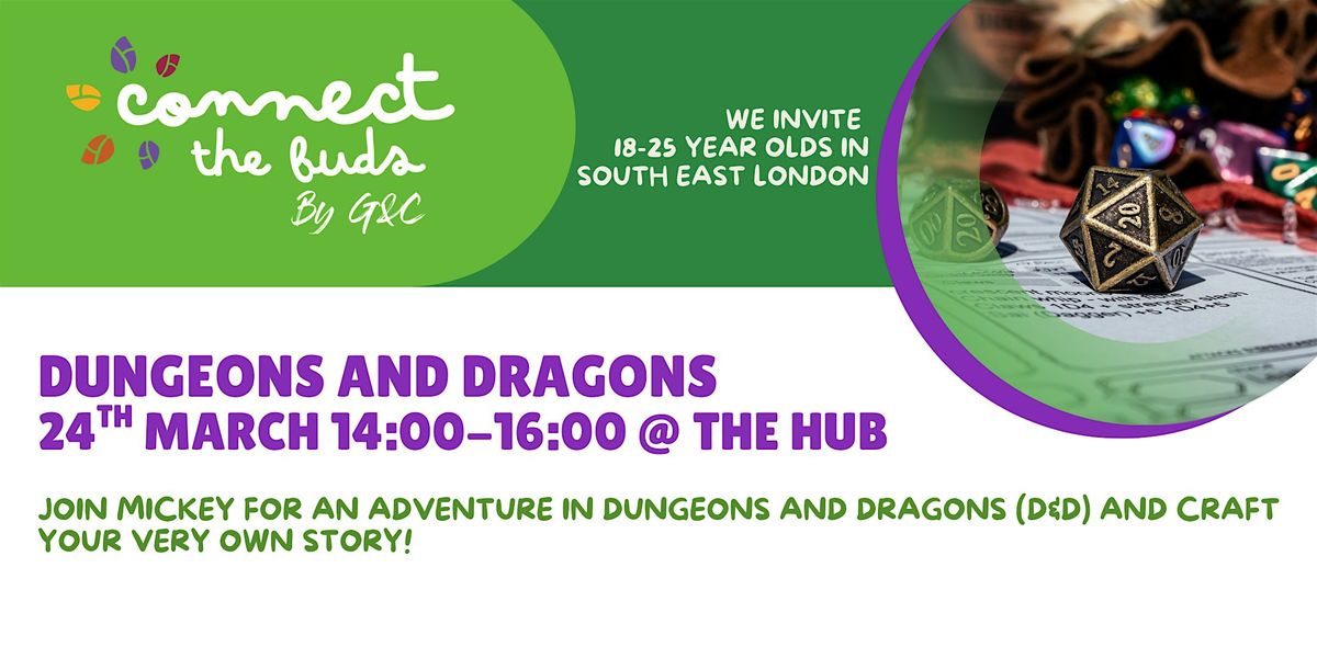 Ready for a chill afternoon of fun and adventure? Join the Buds for D&D led by Mickey! We'll be focusing on collaborative storytelling and exploring ways to play as a young adult. Beginners encouraged!