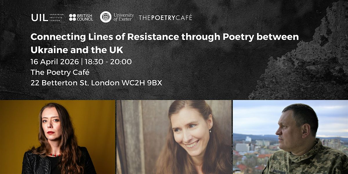 Join prominent Ukrainian poet, translator and cultural advocate Yuliya Musakovska, in person, and poet, novelist, and captain in the Ukrainian Defence Forces Anatoliy Dnistrovyi (joining online from Kyiv) as they share their voices in both the original language and translation. They will be joined by the acclaimed British poet Fiona Benson for a moving literary connection through culture. The event will be moderated by Hugh Roberts, Professor at the University of Exeter and an avid promoter of contemporary Ukrainian literature through translations produced in collaboration with Fiona and Yuliya among others.