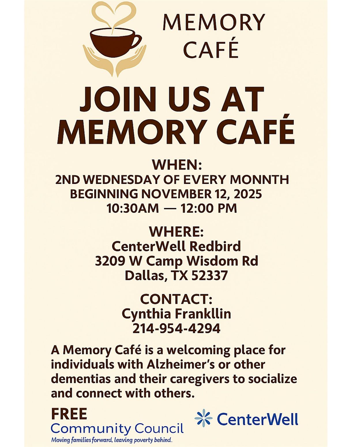A Memory Café is a welcoming place designed specifically for Caregivers and their Care recipients to enjoy social time together & make meori