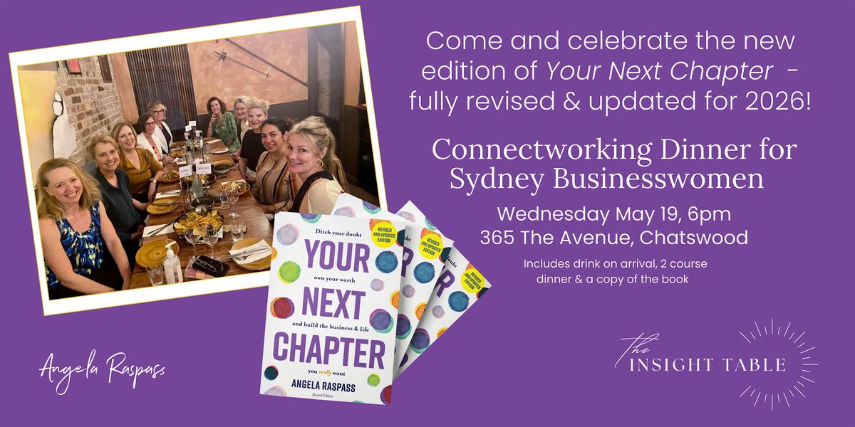 The next Insight Table event is in Sydney to celebrate the release of the fully revised and updated edition of my book - Your Next Chapter: Ditch your doubt own your worth and build the business and life you really want , with each guest receiving a signed copy.
