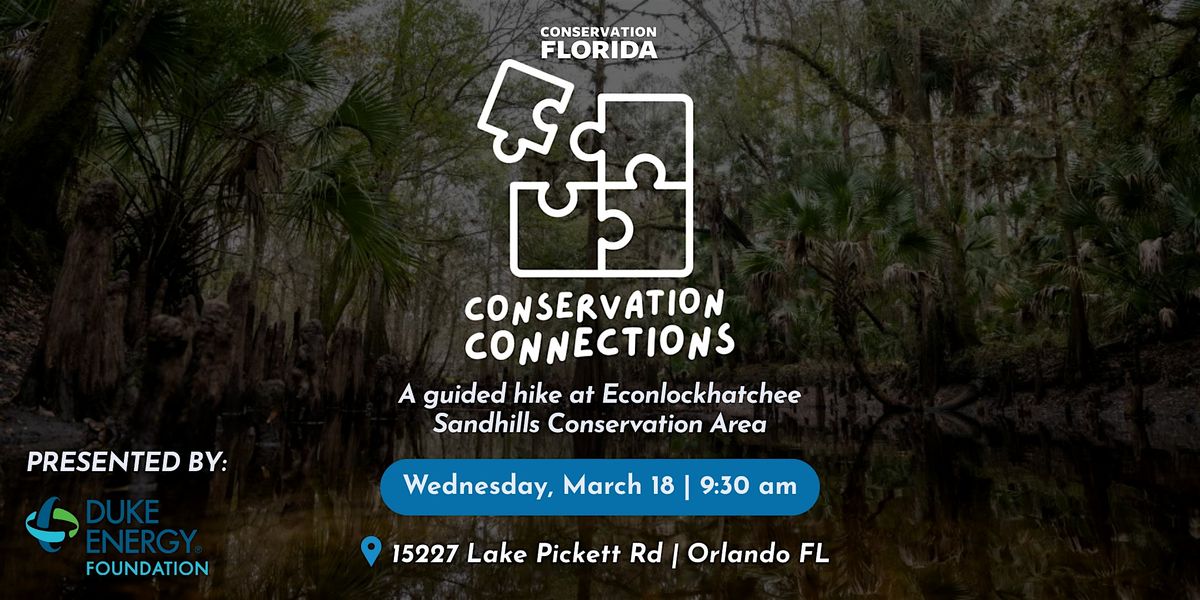 This 3.2‑mile loop will lead you through sand pine scrub, shady oak hammocks, and habitats nestled along the floodplain of the Econlockhatchee River.Along the way, we’ll explore why conservation lands matter for you, for us and for wildlife like the Florida panther.A plant expert will point out native species and share educational tidbits, while a Conservation Florida team member shares more about our work statewide to protect and connect wild Florida.