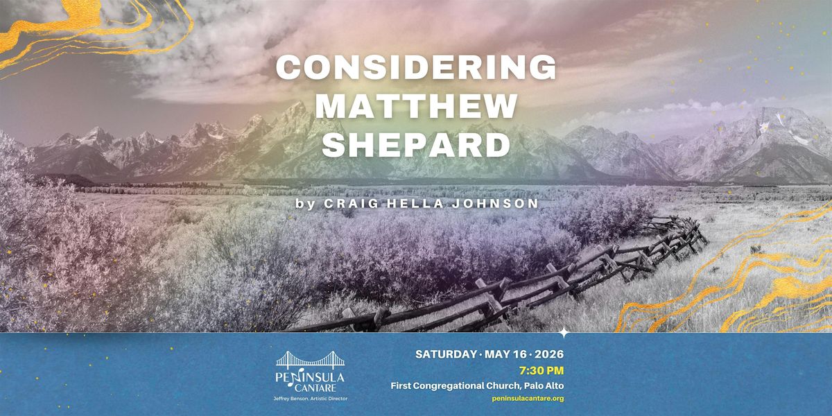 Join Peninsula Cantare for an emotional and moving season finale! The centerpiece work will be Craig Hella Johnson’s Considering Matthew Shepard, with staging and chamber orchestra. This uplifting piece offers listeners a compassionate and evocative musical journey through Matt’s story. The chorus and soloists will draw you into a musical world of immense beauty, helping to share the light and love this “ordinary boy” brought to all he met. You won’t want to miss this concert!