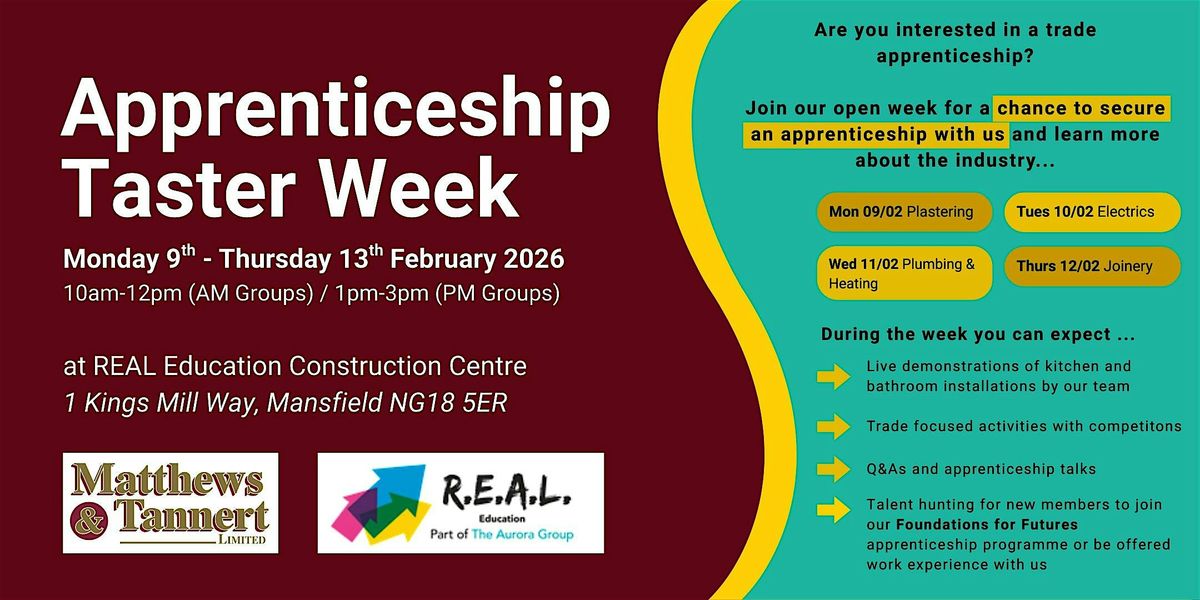 Join us for our Apprenticeship Taster Week, delivered in partnership with REAL Education as part of National Apprenticeship Week 2026.