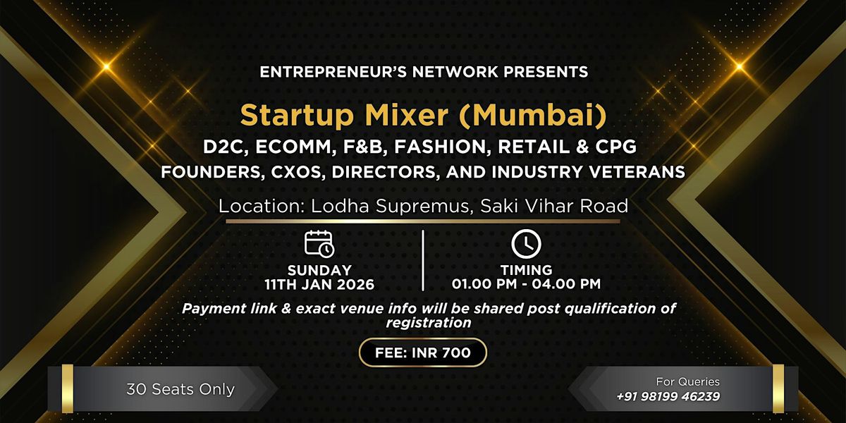 The Startup Mixer (Mumbai), hosted by The Entrepreneur’s Network, is a curated gathering designed to bring together founders and leaders from Consumer Brands — including D2C, eCommerce, F&B, Fashion, Retail, CPG, and Consumer Goods.