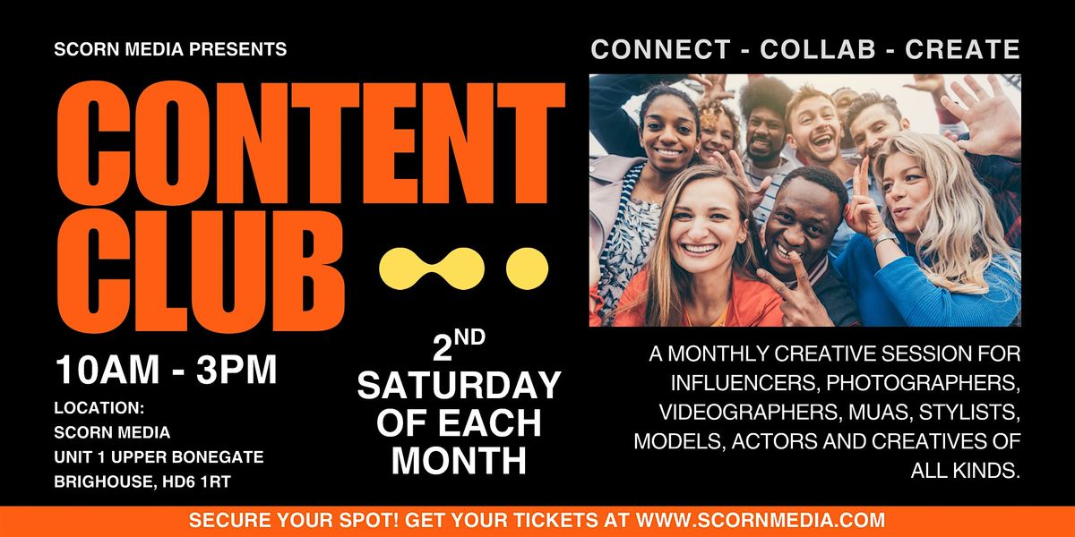 Welcome to the Content Club at Scorn Media. This is a monthly creative event designed for content creators of all kinds and anyone serious about elevating their content.