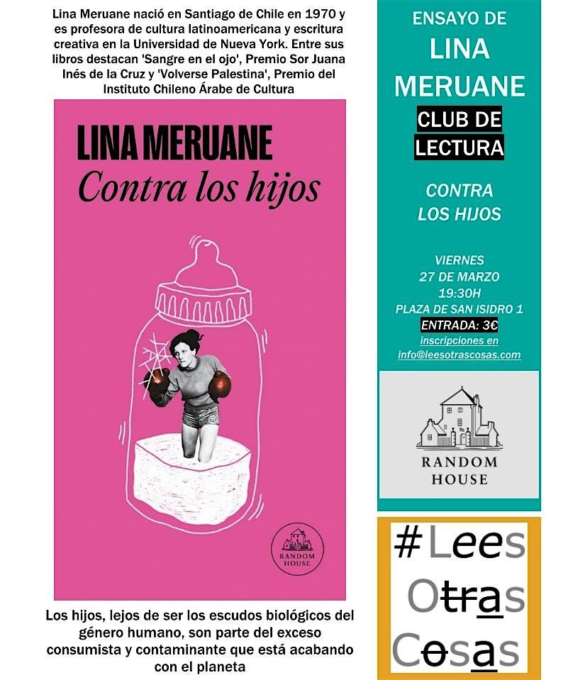 "Los hijos, lejos de ser los escudos biológicos del género humano, son parte del exceso consumista y contaminante que está acabando con el planeta". Cuestiona los discursos culturales que promueven la preeminencia del hijo y lo llevan a ocupar un lugar despótico en el siglo XXI. Una provocadora advertencia contra el retorno de un modelo conservador que pretende devolver a las mujeres al encierro doméstico. Edita: Literatura Random House. +info sobre el libro: https://www.penguinlibros.com/es/literatura-contemporanea/37061-libro-contra-los-hijos-9788439734062 Será el viernes, 27 de marzo, a las 19:30h en la librería Lees Otras Cosas (Plaza de San Isidro 1, Granada). Entrada: 3€. Inscripciones en [email protected] Importante: #CuídateYCuídanos