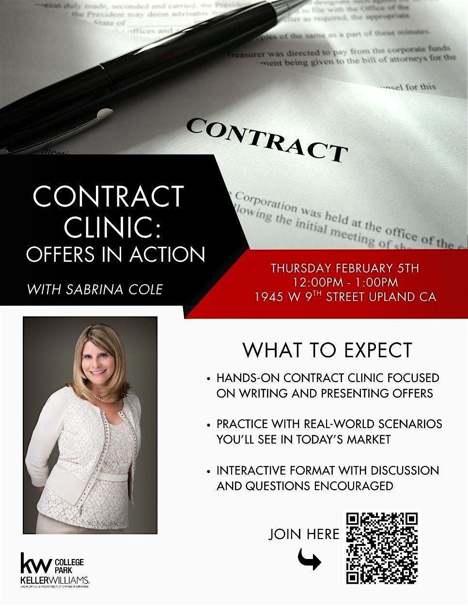 Contract Clinic: Offers in Action is a hands-on training designed to help agents feel more confident when writing and presenting offers!