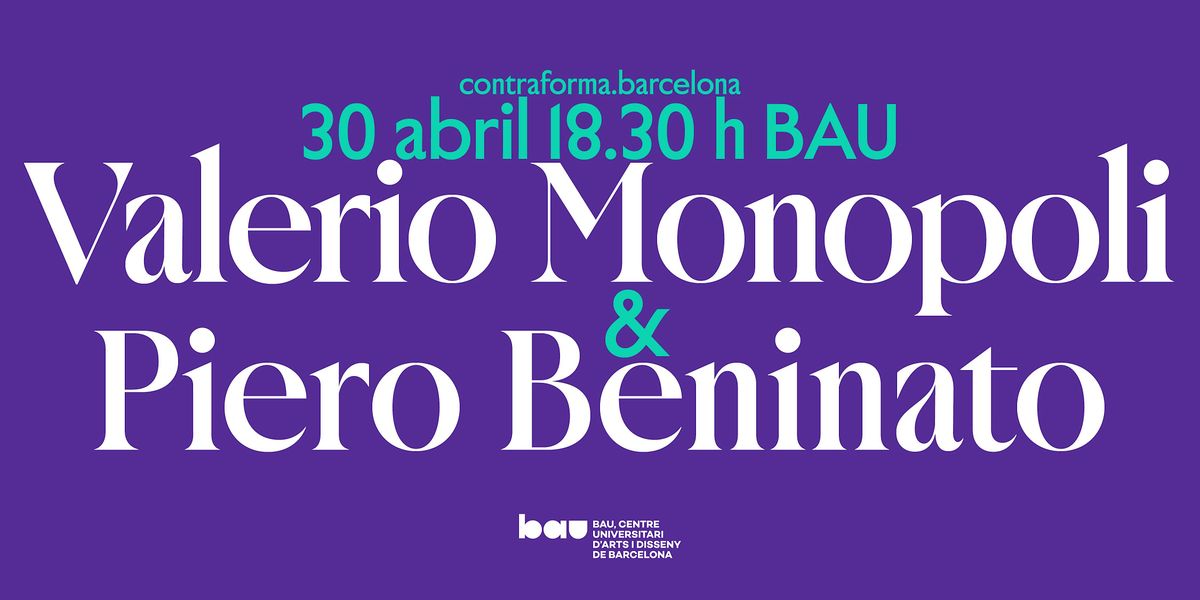 El pròxim 30 d'abril, rebrem a Valerio Monopoli () i Piero Beninato (), dues figures clau que connecten la tradició tipogràfica italiana amb noves formes d’expressió contemporània.