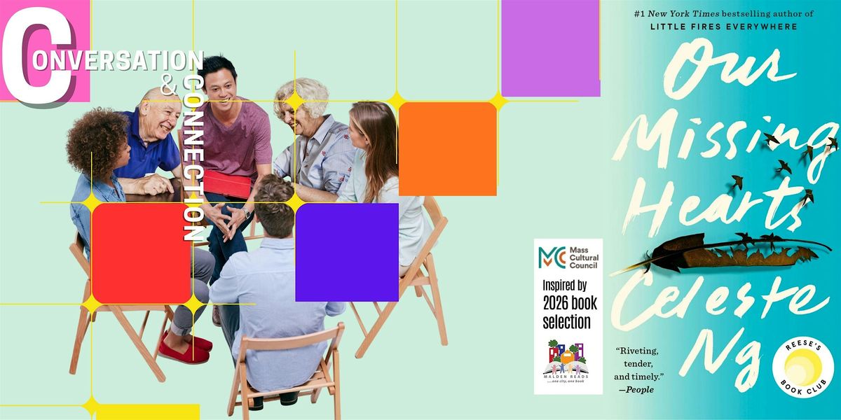 The evening will include small group conversations grounded in the themes of Malden Reads’ selection, Our Missing Hearts, a dystopian novel that follows a 12-year-old boy’s search for his missing poet mother in a near-future America where dissent is punished and families are torn apart. This novel offers cautionary yet hopeful reflections on art, love, and storytelling that resonate deeply today in Malden and across a nation grappling with division while yearning for connection, hope, and relief.