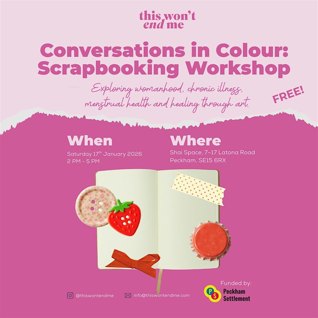 A core part of the workshop is a guided scrapbooking and journaling experience. Participants are given a small scrapbook and a set of prompts that invite reflection on themes such as womanhood, the body, pain, rest, memory, and healing. Through collage, colour, words, and texture, attendees are encouraged to externalise their experiences in a way that feels safe and personal.