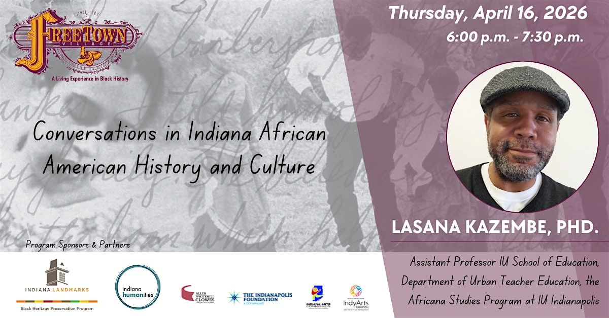 Join us for our monthly conversation with historians, researchers, and educators as we discuss topics related to Indiana’s Black heritage. Our speaker will be Dr. Lasana Kasembe, an Emmy® Award-winning poet, educator, and critical Black scholar whose work examines culture, race, history, the arts, and the social context of education. He is currently an assistant professor in the IU School of Education’s Department of Urban Teacher Education and in the Africana Studies Program at IU Indianapolis.