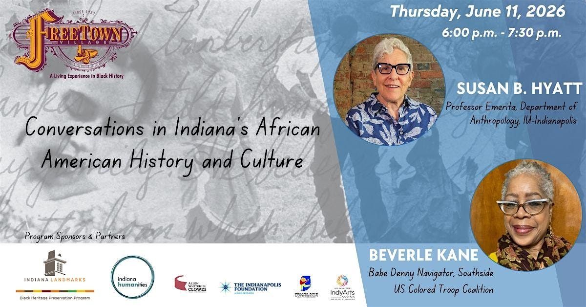 A conversation with Susan B. Hyatt, Professor Emerita of Anthropology at IU–Indianapolis, and Beverle Miller Kane, long‑time Southside resident and Babe Denny Navigator with the Southside US Colored Troop Coalition.