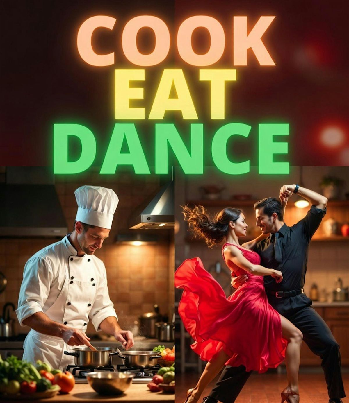At Cook Eat Dance Date Night you will cook a fun recipe together. Enjoy your dinner with wine. Then step onto the dance floor for a fun easy lesson designed for beginners.