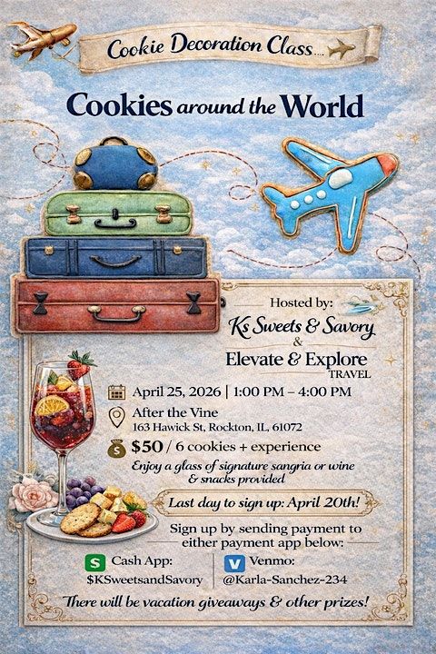 Get ready to sweeten your day with our fun, in-person cookie decorating class! Explore delicious cookie's & learn cool decorating techniques. It's the perfect chance to meet fellow cookie lovers and unleash your creativity. No experience needed—just bring your sweet tooth and let's have a blast decorating cookies around the world!