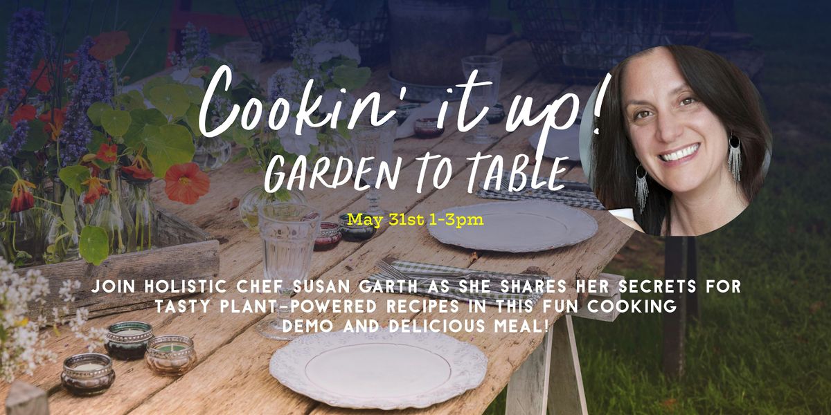 Spend a delicious, fun afternoon with Holistic Chef and Health Coach Susan Garth, as she shows how to bring the fresh flavors of the garden straight to your plate! A professional chef trained in the art of Macrobiotics, Susan combines her passion for healthy cooking, fresh plant-based recipes and mouth-watering flavors, to create a memorable menu that you can recreate for your family at home! A menu of flavorful favorites that even your kids will love and ask for!