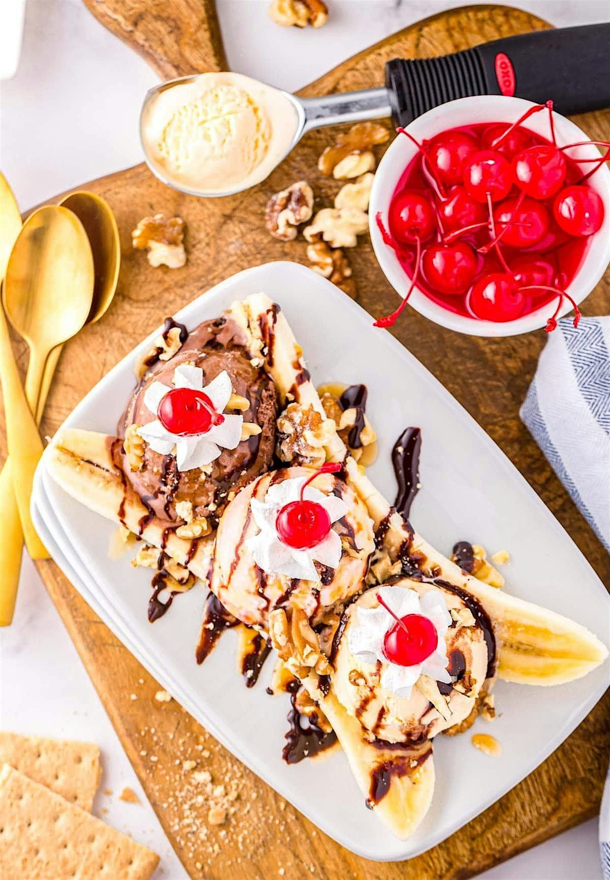 • Banana Splits with Homemade Strawberry & Chocolate Sauces