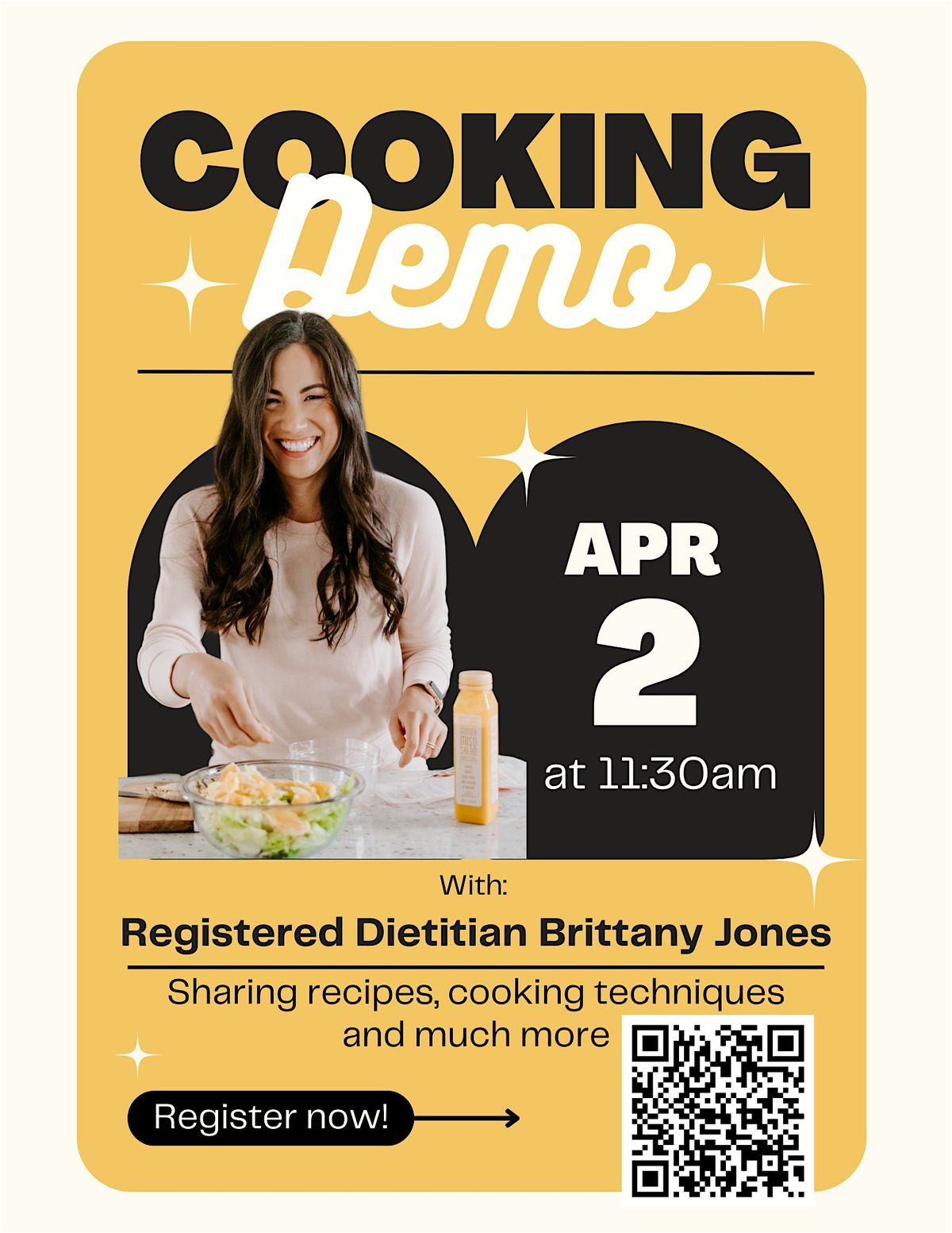 Love food? Come hang out with us for a fun, Cooking Demo where you'll learn healthy, delicious recipes and nutrition tips in person with Brittany Jones. It's a chill, friendly vibe—perfect for foodies of all levels wanting to spice up their kitchen game.