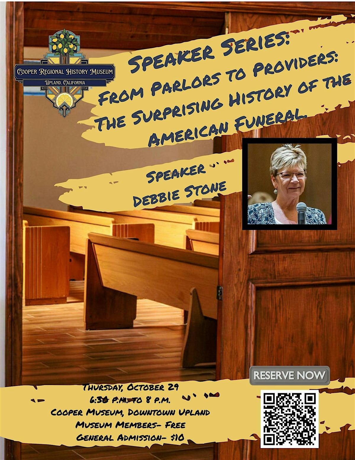 Uncover the fascinating evolution of how we honor the departed in this unique session led by Debbie Stone, former Mayor of Upland and a cornerstone of the local community through Stone Funeral Home. This talk traces the shift from intimate 19th-century home wakes in "death parlors" to the specialized, professional industry we recognize today. Drawing on her deep roots in one of the region’s most historic family businesses, Stone will share surprising insights into the cultural shifts, local traditions, and changing etiquette that have shaped the American funeral experience. It is a rare opportunity to hear a community leader’s perspective on the history of a profession that touches every family.