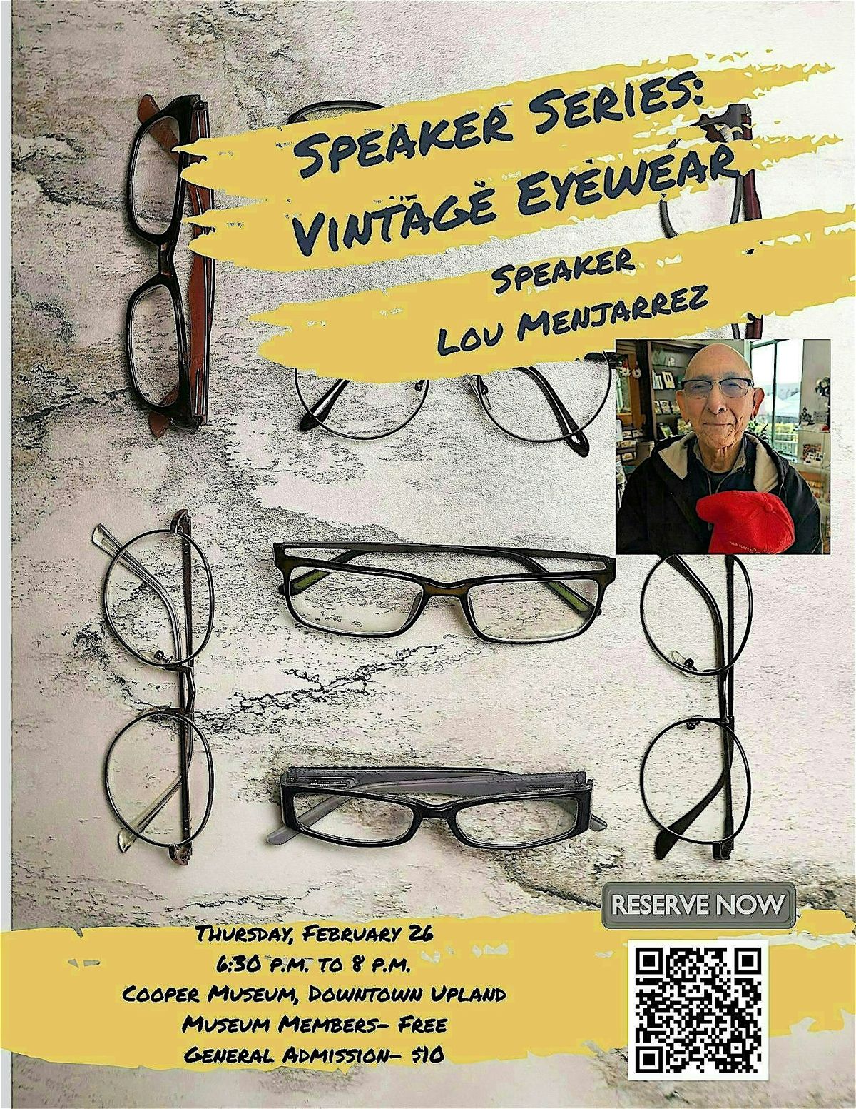 Our guest speaker, Lou Menjarrez, will take us on a journey through the history, design, and cultural impact of iconic frames. Whether you’re a history buff, a fashion lover, or a collector, this is an evening you won't want to miss.