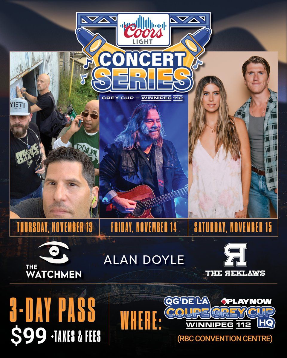 🎉 Prepare to be amazed at Coors Light Concert Series: The Watchmen Alan Doyle & The Reklaws - 3 Day Pass, the most anticipated gathering of the season! 🌟 Set against the stunning backdrop of RBC Convention Centre - Winnipeg in vibrant Winnipeg, MB, this event promises to redefine your expectations. 📅 Mark your calendars for November 12th, 2025 at 06:00 PM and get ready to immerse yourself in an atmosphere of wonder and excitement. ✨ From the moment you arrive, you'll be transported into a world where memories are made and stories come alive. They have crafted an experience that perfectly harmonizes entertainment, innovation, and community spirit. 🌈 Join us as we create moments that will be discussed for years!http://maps.seatics.com/GeneralAdmissionEvent_2019-09-30_1208_04212020_090506_SVGC_tn.png