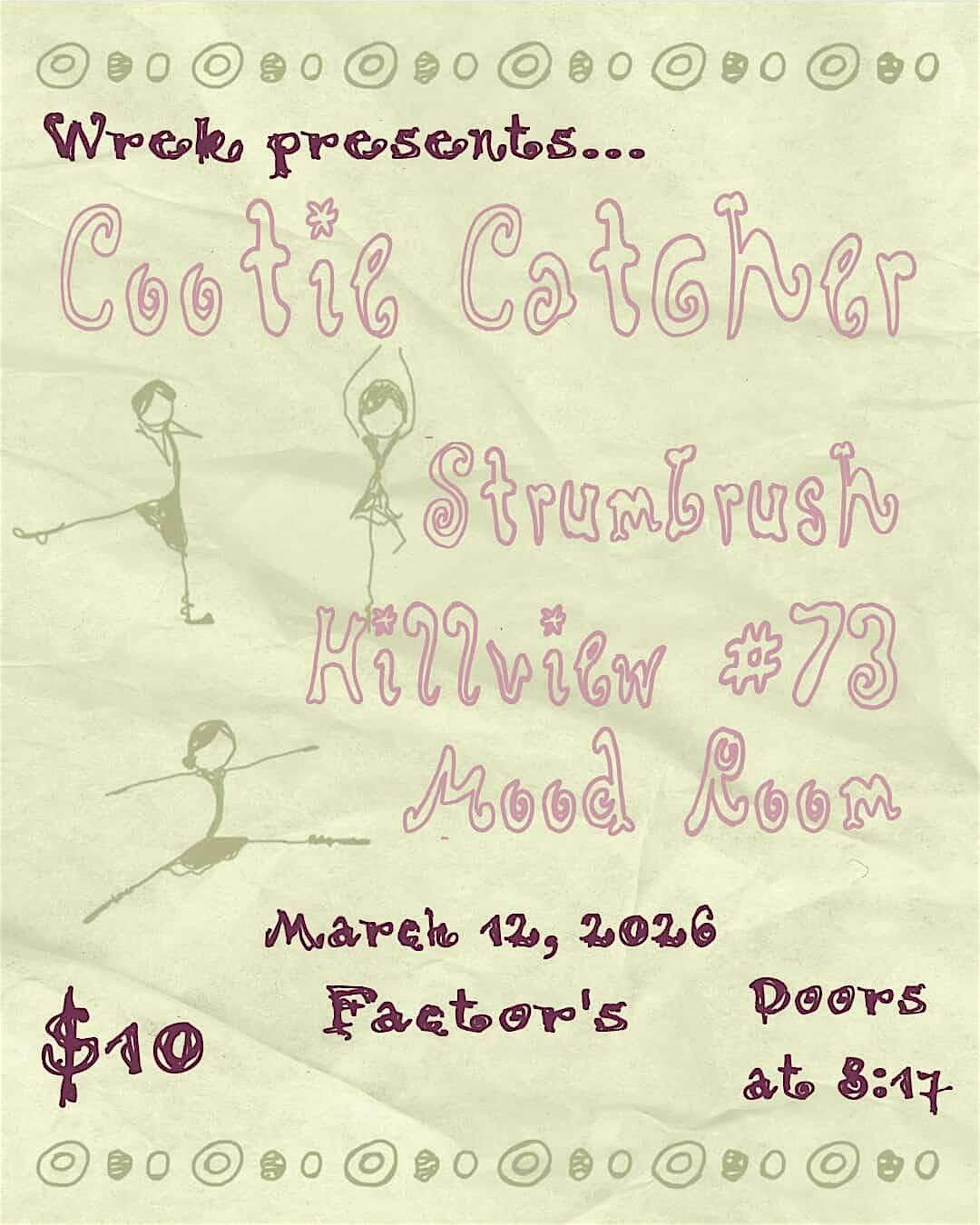 WREK presents: Cootie Catcher, Strumbrush, Mood Room & Hillview #73 @ Factor's March 12th, 2026