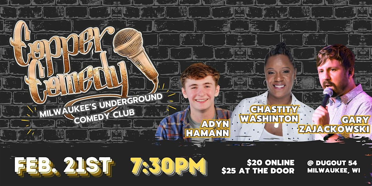 Get ready for an unforgettable night of laughs at Copper Comedy! Milwaukee's hidden gem for live standup. We are a speakeasy, New York styled club located at Dugout 54. Join us for a showcase in the city’s very own underground comedy club.