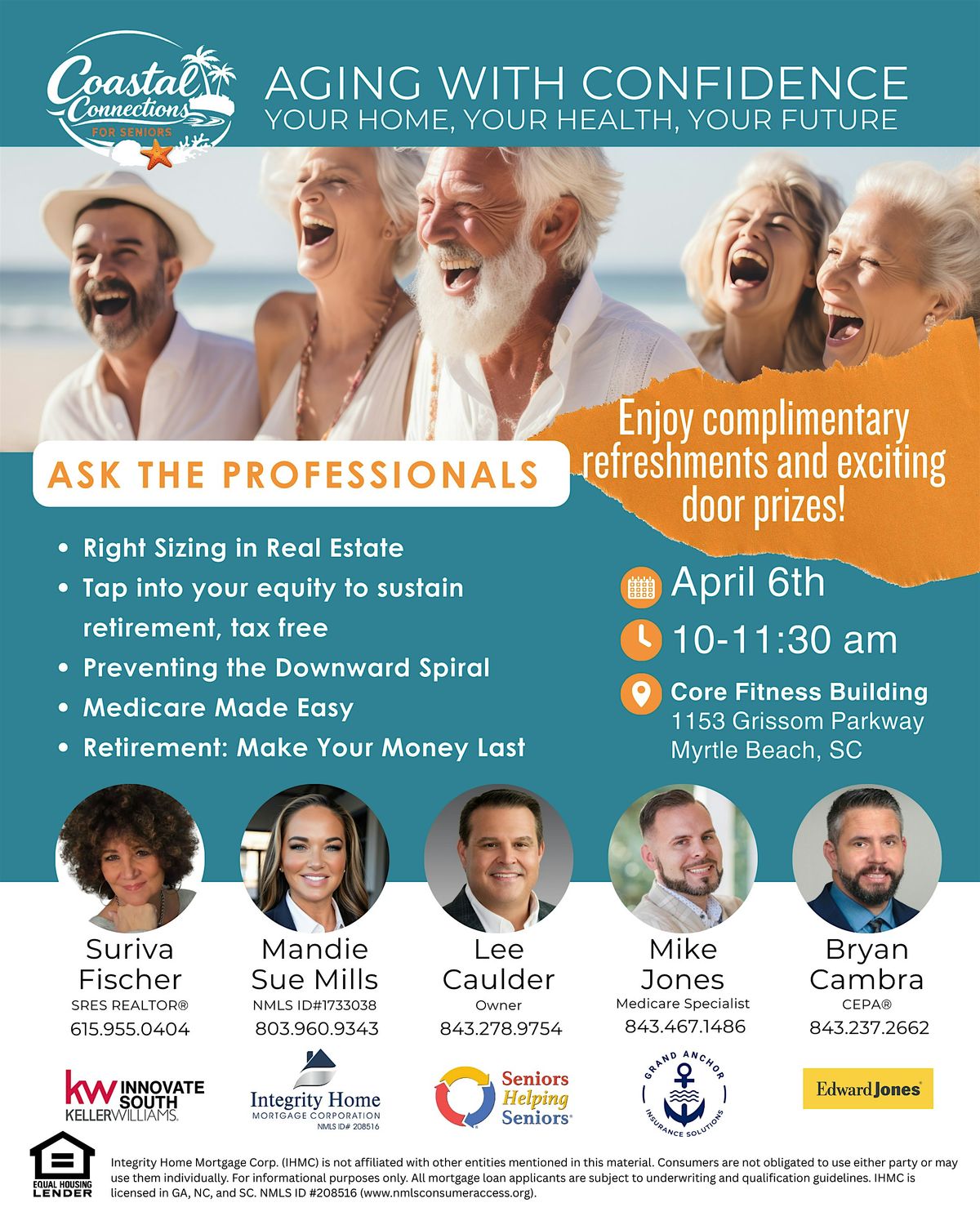 Join us in person for a laid-back event all about embracing the golden years with confidence! We’d love to invite you to a free, educational seminar created especially for seniors who want to feel confident about their home, health, and financial choices in retirement.