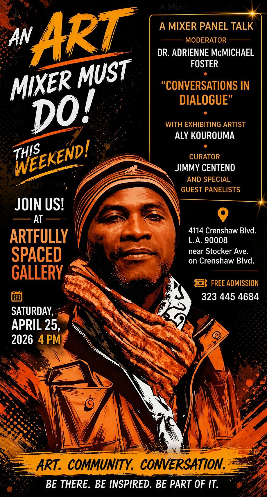 Crenshaw District Solo Exhibition by Artist/Muralist Aly Kourouma. This Saturday join us for a Mixer Panel Talk!About this Event