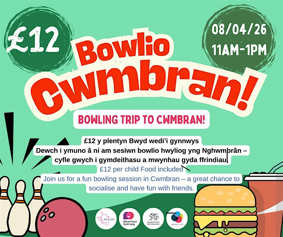 Mae Menter Iaith BGTM a'r Urdd yn cynnal sesiwn bowlio ar gyfer plant ysgol gynradd ym mlynyddoedd 2-6 ( 6-11 mlwydd oed) yn Holywood Bowl yng Ngwmbran yn ystod hanner tymor.