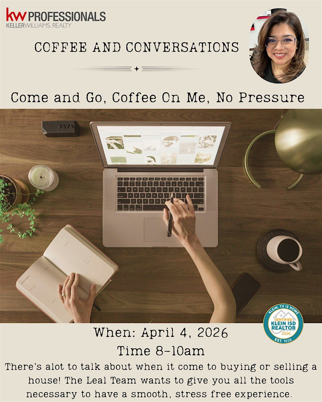 Stop by for 5, 30, or 60 minutes-your choice! Indulge in a cup of coffee, and leave with more than just a delicious coffee-gain valuable home-buyer & seller insights that'll perk up your home buyer experience! Don't miss out on this blend of coffee and conversation. See you there!