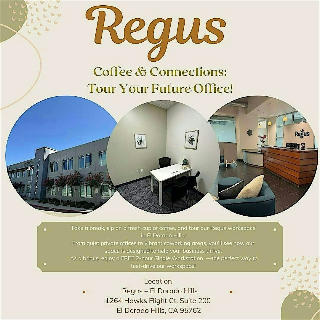 Join us for Coffee & Connections, an exclusive opportunity to explore the Regus workspace in El Dorado Hills! Take a break from your routine, enjoy a fresh cup of coffee, and discover how our thoughtfully designed offices can support your business.