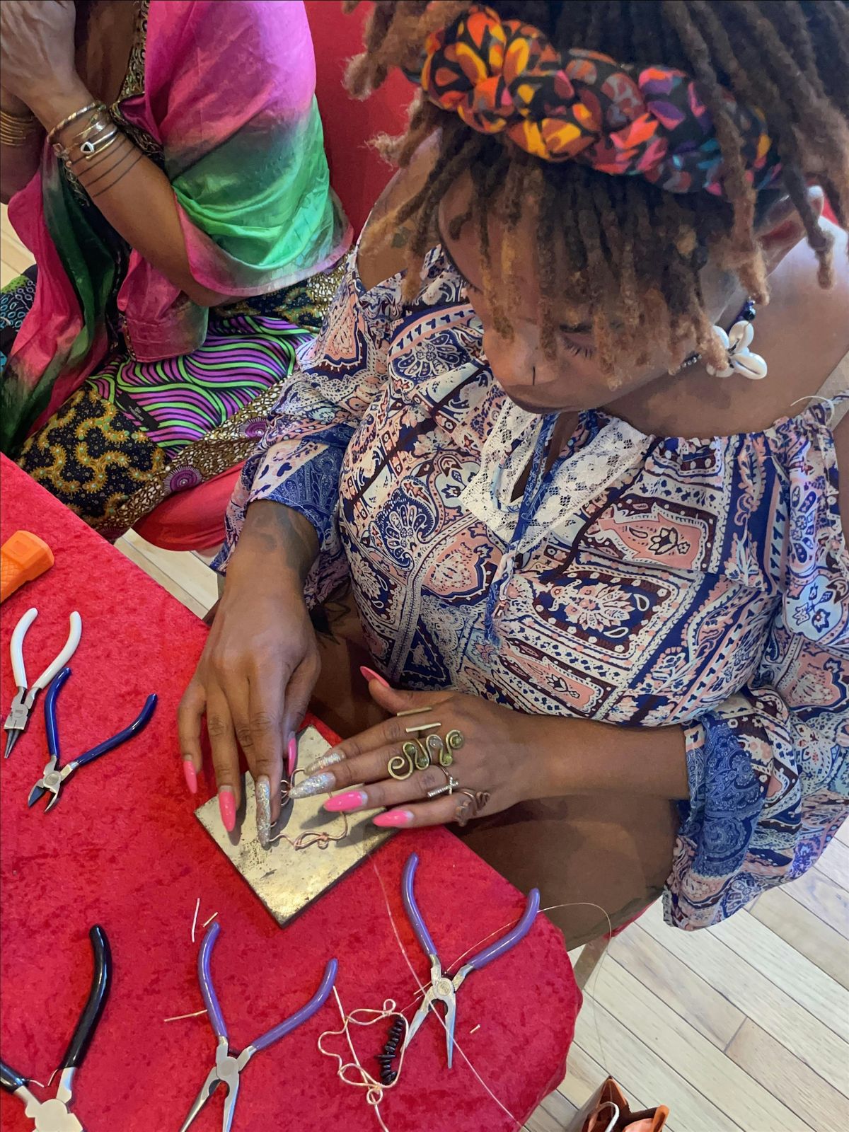 We set an intention on our piece, and our experiencein the class, while staying mindful of te tasks we are performing. We Use Copper & Crystals to create the most beautiful pieces and you leave with something you can wear and share with others. There will be wine & light refreshments serced