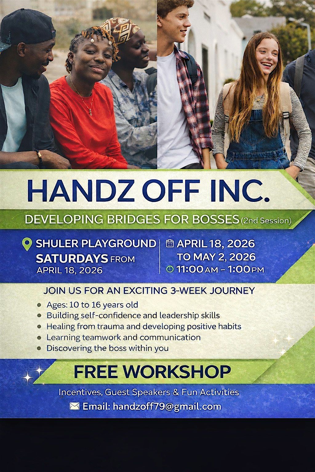 Developing Bridges for Bosses: FREE mentorship ages 10–16! Incentives, guest speakers, leadership, confidence & life skills. Register today