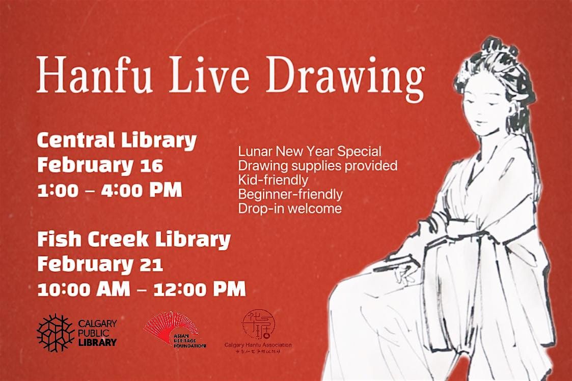 This free, in-person event, from 10:00 am –12:00 PM, the Fish Creek Library will host a Lunar New Year celebration featuring live music, cultural performances, demonstrations, and a festive dragon dance. As part of this larger community celebration, a special Hanfu Live Drawing session will take place inside the library.